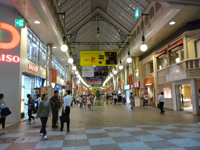 夕飯を食べに行った商店街の様子。屋根つきで雰囲気いい感じ。