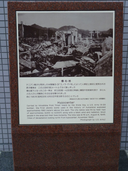 長崎では、爆心地は公園になり立派な碑が建てられていましたが、