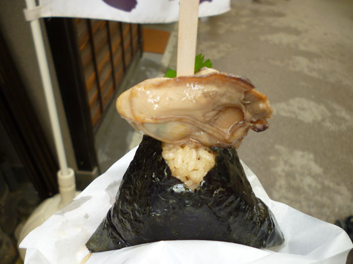 5件目、牡蠣おにぎり。牡蠣の旨みを吸ったごはんがうまうま。