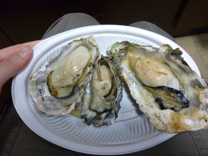 最初に食べた焼き牡蠣が1番美味しかったです。身が大きくて肉厚ジューシー、熱々うまうま。