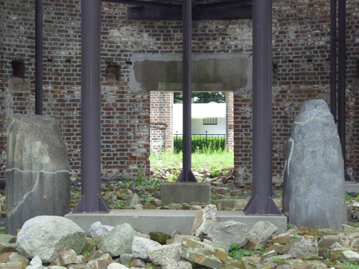 ぼこぼこ泡立った瓦、溶けてくっついた陶器やガラス瓶。曲がった鉄骨、石に残る影。